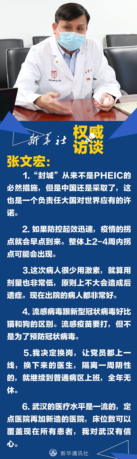 近日,上海医疗救治专家组组长、复旦大学附属华山医院感染科主任张文宏面对记者采访说的这些话,使他成为网民心中的“硬核”医生。1月31日,张文宏在接受新华社记者的专访时表示,疫情来了,坚守岗位是医生的职责所在。 ![]() 策划:汪金福、孙志平、姜微 统筹:田朝晖、幸培喻 摄影:潘旭 文字:季明、仇逸 视频:潘旭、岑志连 编辑:南辰、姚竣译、刘畅 新华社全媒编辑中心 责任编辑:日升 (责任编辑:日升) |