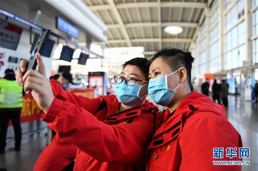 2月12日,黑龙江省对口支援湖北孝感医疗队从哈尔滨出发。 新华社记者 齐泓鑫 摄