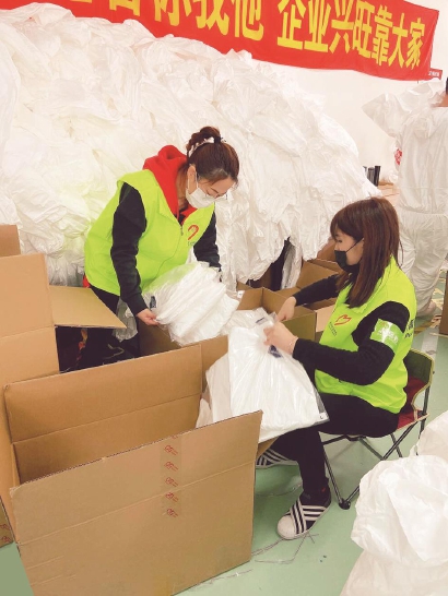 荷花池第二幼儿园青年教师当上了防护服生产志愿者 乐洛 摄