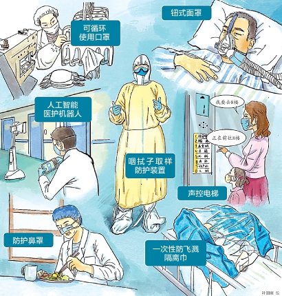 可循环使用口罩: 采用新型纳米材料开发 过滤性能保持200小时 ■本报记者 刘锟 面对井喷的口罩需求,有没有一种可循环使用的口罩?日前,一款运用了纳米材料的新型口罩在沪研制成功,防护等级达到民用KN95级别,“可重复使用”是其最大亮点。前天,这款口罩的日产能已爬升至10万只。经相关部门检测后,最快将于本周上市。 常规口罩生产线上,口罩是一个个从机器里“吐”出来,而记者在位于奉贤区的上海巨臣婴童服饰股份有限公司生产车间见到的这款新型口罩,制作流程更像是缝制一件缩小版的服装。“这款口罩完全是在原有服装加工平台上实现生产。”巨臣公司负责人贝史伟介绍,先经过自动裁床裁切出口罩初样,再转运至加工平台,由工人利用缝纫机缝制完成。 之所以如此加工,是因为材料的特殊性。常规一次性医用口罩或N95口罩以熔喷无纺布为主体材料,通过超声波工艺,将两层厚的无纺布进行“焊接”而成,防护原理是利用熔喷无纺布的静电效应,捕集微细尘埃和病毒。但这款新型口罩的防护功能,利用的是夹在口罩中间的滤芯材料,即纳米纤维微孔薄膜。它的厚度不超过3微米,但具有防水、透气和对颗粒物高度的初始过滤性能,而且环保、抗腐蚀、能耐受130℃的蒸汽。同时,新型口罩外部面料使用全棉材质,透气性、柔软度、舒适度优于无纺布材料,长时间佩戴,不会有潮湿不适之感。 市经信委主任吴金城介绍,上海一直探索口罩的创新性生产,尤其是推动企业用新材料、新技术研发新型口罩。当初,在排摸全市口罩等防疫物资产能时,市区两级经信部门同时收到两份申请:一份是巨臣的生产申请,另一份是上海汉圃新材料公司的原材料供应意向。后者就是纳米纤维微孔薄膜的生产者。 巨臣在2003年非典时期,曾发明了一款由头套、口罩、防护眼镜“三合一”的面部隔离防护罩专利产品。“这款防护罩主要原料为无纺布,最初诉求是希望政府帮助企业协调无纺布原料,启动产品生产。”贝史伟说,但无纺布原材料稀缺,市经信委给企业指了一条新路——与汉圃合作,利用新型高分子新材料开发全新的可重复使用的口罩。 汉圃研发的新材料——纳米微孔薄膜去年获国家专利授权。该材料可阻隔非油性及油性颗粒物,对飞沫、粉尘、气溶胶、细菌、病毒等防护效果超过99%,而且具有低呼吸阻力优点,可水洗并重复使用。当政府发出征集令后,汉圃提交了“通过政府向口罩及防护服企业供给纳米微孔薄膜”的诉求。2月9日下午,在市区经信部门牵线下,巨臣和汉圃一拍即合。当晚,工厂连夜赶制了初样产品。经检测,该口罩对直径75纳米的细小颗粒过滤性能超过95%,而新冠肺炎病原体病毒直径大约在100纳米。 经企业自测,该口罩经受沸水、酒精、84消毒液等反复消毒处理20次后,过滤性能仍保持基本稳定。正常佩戴、薄膜不破损的情况下,过滤性能可保持200个小时。但企业建议,重复使用次数最好不要超过10次。 声控电梯: 乘电梯无需手触按钮 语音报楼层自动抵达 ■本报记者 刘锟 “电梯你好,我要去八楼。”“八楼,好的。”近日,宜昌市第二人民医院的声控电梯“蹿红”网络。乘梯人员无需用手按按钮,只需语音报出要去的楼层,电梯就可自动抵达目的地。 记者从相关部门获悉,这款附加了智能语音系统的特殊电梯,由上海爱登堡电梯公司制造。自疫情发生以来,有专家表示,电梯按钮可能会传染新冠病毒。爱登堡电梯资深工程师潘阿锁在与公司董事长李绥的一次视频会议中聊起这个问题,突然想起几年前曾开发过一套电梯声控设备,一直没有实现应用。“现在不正是声控系统的用武之时吗?” 正值大年初一,还在盐城老家的潘阿锁火速赶回上海,集结了10多位仍坚守在岗位的工人,把以前的资料翻出来,重新验证,加速开发声控电梯系统。潘阿锁在过去十几年的电梯制造实践中,独自完成过40多项技术攻关和技术创新项目。正当他带领团队连夜攻克声控系统时,一个个紧急任务同时到来,北京小汤山医院修缮工程以及湖北省宜昌市第二人民医院扩建工程都需紧急安装电梯。于是潘阿锁带领团队开启“两线作战”模式。当爱登堡把目前公司正在开发电梯声控设备的消息告知后,对方都很感兴趣。 2月10日,声控设备在公司内部电梯上完成测试。随后,马不停蹄运送至宜昌市第二人民医院,于2月22日在新安装的电梯上正式上岗。紧接着,北京小汤山医院也完成了声控设备加装。 李绥告诉记者,目前上海已有多家医院和商场向爱登堡提出加装需求,公司正在抓紧备货,近日将完成加装。其实,这套电梯声控设备不仅可以解决疫情期间交叉感染问题,平时也可解决电梯拥挤导致按钮被遮挡,乘梯人员无法便捷按钮的尴尬。目前这套声控设备的成本在4000元左右,随着批量化生产,未来有望降至1000元左右。 “瑞金小白”和两个专利齐登抗疫战场 提升医疗服务响应效率,助力一线医护人员防护 ■本报记者 黄杨子 抗疫战场上,什么最重要?防护。医护人员只有保护好自己,才能保护病人。除了每天由院感工作人员帮助每个人检查防护外,日前,上海交通大学医学院附属瑞金医院第4批支援武汉医疗队开动脑筋,不仅借助最新IT技术,投用人工智能医护机器人,还设计了两项与防护有关的“作品”。前天上午,这两项实用新型专利同时申报,分别是“一种面部防压伤保护组件”和“一种咽