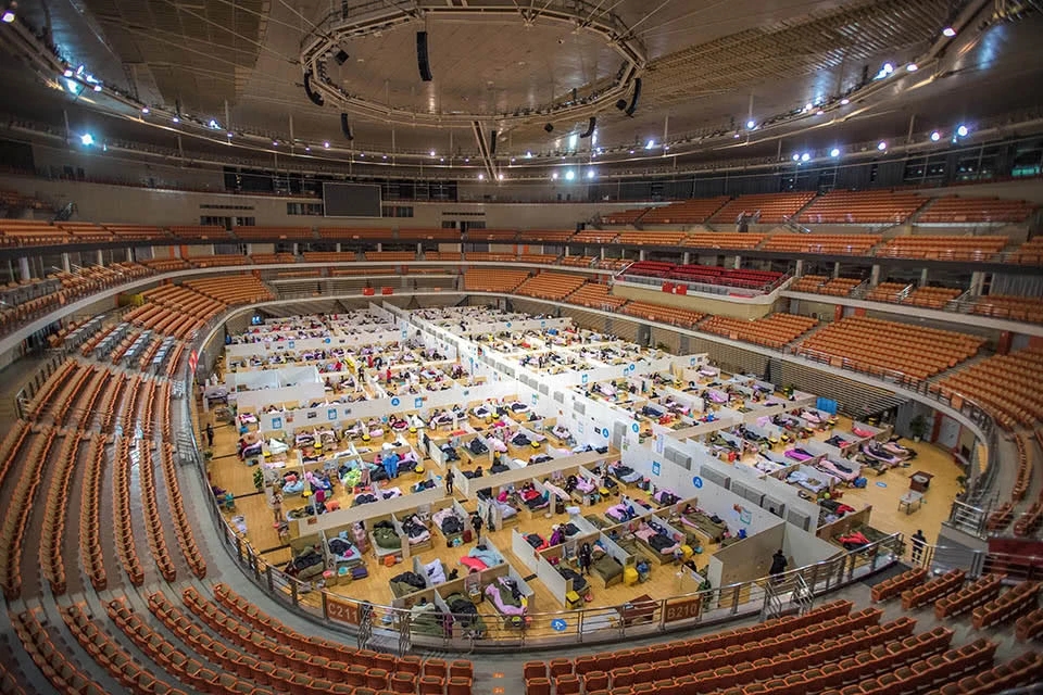 2020年2月17日,武汉体育中心方舱医院。(新华社 肖艺九/图)