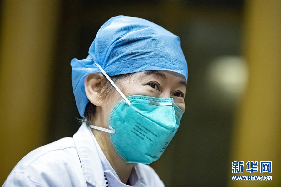 一直战斗在重症一线的华中科技大学附属协和医院的周琼教授在她负责的病区(2月21日摄)。 新华社记者 程敏 摄