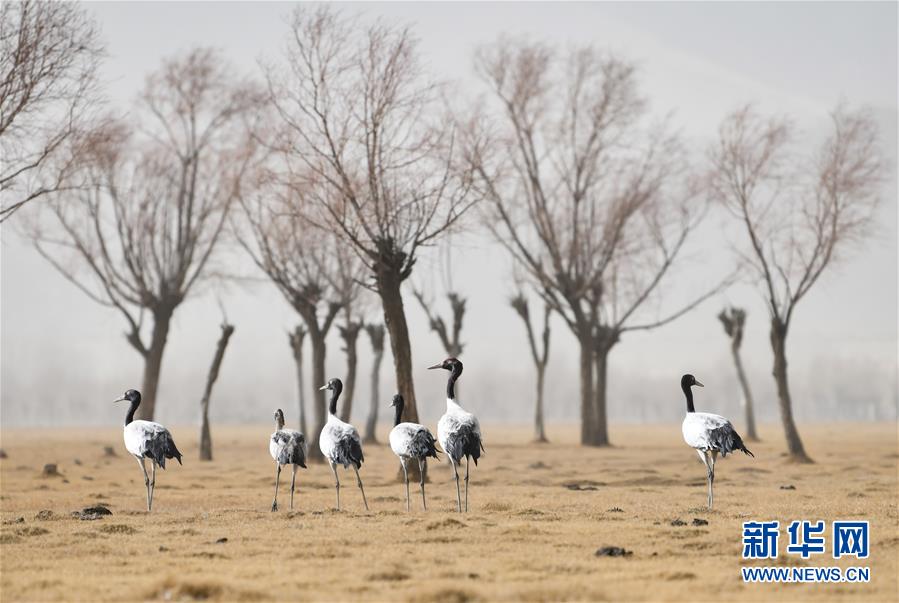 在西藏山南市境内雅鲁藏布江北岸,黑颈鹤在休憩(3月11日摄)。随着天气转暖,西藏雅鲁藏布江河谷地带的黑颈鹤即将结束越冬,返回藏北。新华社记者 晋美多吉 摄