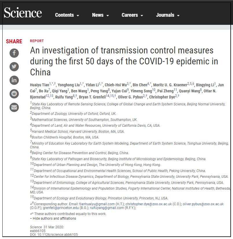 ![]() 一篇由北京师范大学、英国牛津大学、美国哈佛大学等国内外知名学府和机构学者联合撰写的研究论文发现,在新冠病毒疫情出现在武汉后的 50 天里,武汉的封城措施,以及中国其他城市采取的关闭公共场所和禁止聚集等严格的防控措施,或令全中国 70 万人在这段时间里免于被感染。 目前,这篇论文已通过同行评议,刊登在了全球知名的学术刊物《科学》杂志。 如上图所示,这篇 3 月 31 日刊登于《科学》杂志的论文,是由北京师范大学、英国牛津大学、美国哈佛大学、美国波士顿儿童医院、北京疾控中心等国内外多所知名学府和机构的学者参与撰写的。论文的第一作者,为北京师范大学全球变化与地球系统科学研究院的田怀玉课题组。 这篇论文在开篇部分指出,尽管目前对于新冠病毒的传播性已经有了很多研究,但诸如旅行禁令和限制人群聚集等防疫措施的效果如何还不清楚。 因此,论文选取了从 2019 年 12 月 31 日至 2020 年 2 月 19 日、疫情在武汉出现的前 50 天时间进行了研究。从论文来看,这段时间之所以会引起研究人员的兴趣,其中一个原因是这 50 天里包含了春节之前、春节期间和春节之后这三个时间段。 接下来,研究人员便通过对比 2017 年和 2018 年春节人员流动的数据,发现尽管在 2020 年 1 月 23 日武汉封城之前,武汉在 1 月 11 日至 1 月 23 日之间已经有 430 万人离开了这座城市,并不亚于 2017 年和 2018 年春节前 15 天里 520 万人出城的数字。 但在武汉封城后,原本在 2017 年和 2018 年春节后的 25 天里出现的 670 万人的出城人流,却在此次疫情期间几乎都被控制住了。这也就大大减少了武汉的新冠病毒感染者的输出。 不过,由于毕竟在封城之前有近 500 万人离开了武汉,论文表示这也就导致自 2019 年 12 月 31 起的 28 天里,中国有 262 座城市都先后出现了新冠病毒的感染者。论文指出,这个传播速度已经远远超过了 2009 年的 H1N1 甲流,当时那场疫情是用了 132 天才扩散到这么多城市的。 而截止 1 月 30 日,论文发现中国各省上报的累计感染人数,也都与武汉先期出城的人数有着明显的关联,其中人口越多且有更多来自武汉的旅行者的城市,疫情出现得也就越早越快。 ![]() (注:上图地图中,红点为各省截止 1 月 30 日上报的感染人数,红点越大的感染人数越多。同时,颜色越深的地区,则是 2020 年春节之前武汉出城的人口主要流向的区域) 不过,在武汉 1 月 23 日封城措施的影响下,论文分析发现,其他那些人口相对较少、来自武汉的旅行者也相对较少的 130 多座城市,在这一措施的帮助下获得了大致 2.9 天的准备时间,令这些城市可以提前去应对新冠疫情的到来。 由此,论文发现,在那些确诊病例被发现前就已经提前启动了一级疫情应对的城市里,当那里的疫情出现后,其首周的确诊人数比那些更晚采取一级防控措施的城市,少了 33%,差别十分明显。论文还采用另一种数学模型分析发现,那些采取了封停跨城公共交通、关闭娱乐场所和禁止公共聚集措施的城市,其首周上报的确诊病例也会更少些。 论文因此认为,在武汉的封城措施,以及封城后中国各地立刻采取的紧急防控措施的双重作用下,新冠病毒的基本传播指数从 23 日时的 3.15(1 个人可以传染 3.15 个人),被最终压制到了 0.04。 ![]() 论文因此表示,通过模型计算可以发现,如果没有武汉的封城和中国全国各地的紧急防控措施,那么截至 2 月 19 日时,武汉之外的新冠病毒确诊人数可能会达到 74.4 万人,但在封城和各地防控措施的联合作用下,2 月 19 日时武汉之外的确诊人数为 2.9839 万。 换言之,自 1 月 23 日武汉和中国全国意识到疫情的严重性并立刻行动起来之后,这些当时被一些西方媒体看来 " 严苛 " 甚至 " 剥夺人权 " 的防控措施,可能令武汉之外的 70 多万人免于感染新冠病毒,从而大大避免了更为严重的后果。 论文还补充说,武汉的封城措施和中国全国各地的经济防控措施缺一不可,因为通过模型计算发现,如果只有武汉的封城措施,那么武汉之外仍然会有 20 万人感染;而如果武汉没有封城,只有各地的防控措施,武汉之外也仍然会有 19.9 万人感染。 最后,论文用很严谨的表述指出,研究发现中国在春节期间针对新冠病毒疫情采取的前所未有的防控措施,比如武汉封城和一级疫情响应机制,与疫情在前 50 天中出现的增长延缓和确诊病例数缩小,是有 " 强烈关联 " 的——这是因为,论文认为这些手段并不一定是唯一导致疫情被遏制的原因。诸如对于感染和疑似病例以及他们的密切接触者的隔离等措施,也在疫情的防控中发挥了很重要的作用。 不过,在确认了中国强有力的防控措施与疫情在前 50 天得到控制、数十万人免于被感染存在 " 强烈关联 " 后,论文认为随着疫情目前开始在全球其他国家扩散,中国的措施或可成为全世界其他国家学习的对象,只是这些措施能否被复制,哪些措施会更有效,还需要更多深入的研究。 论文同时还警告不要对疫情掉以轻心,因为在实际感染人数总会多于被发现和上报人数的情况下,光靠隔离被发现的人是不够的,还得坚持采取相应的防控措施,尤其是当疫情出现了再抬头的苗头时。论文也呼吁,应该更细致地摸清楚到底有多少人感染了新冠病毒。 目前,这篇论文的内容已经被法国的 24 台(France24)和英国 BBC 等部分欧洲的主流媒体,纷纷以 " 研究人员:中国的封锁措施阻止了 70 万个病毒病例