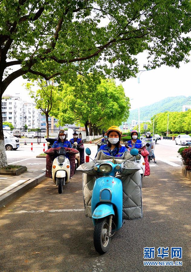 4月30日,浙江省台州市三门县心湖社区网格员上街巡查(手机照片)。新华社发(李贝妮摄)