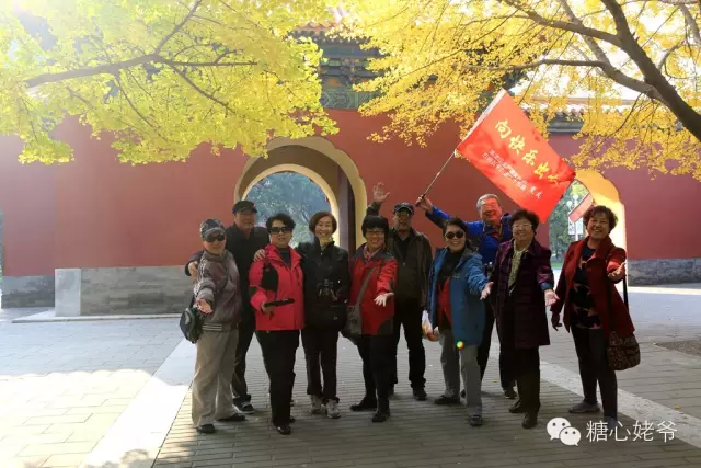 绿的叶儿,黄的叶儿,加上咱小分队“向快乐出发”的红旗,旗底下,十了多个美不滋儿的老头老太太,这情景,过路的看着都觉着美。想照张合影,请边上看热闹的,按一下快门儿。这哥们儿,七零届的,他哥哥也是兵团的,还是五师的,也算是战友了。怎么就那么巧,战友的弟弟,给咱当摄影师。旁边一个老头,瞅着旗子发愣,半天没动地方。一打听,也知青,也兵团,二师的。咱小分队的旗子是做对了,走到哪儿,都能碰上知音。也难怪,当年北京知青到东北兵团,号称二十万,多一半,下乡时候,十六。