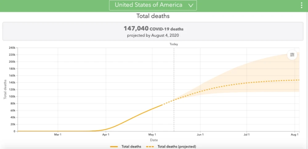 华盛顿大学预测模型。/官网截图