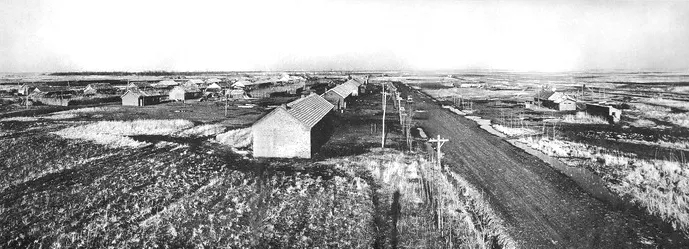 兵团的连队又如一个村庄,几栋宿舍,几栋家属房,外加食堂和马厩。图中的兵团1968年组建,都1975年已初具规模。摄影:陈章庆