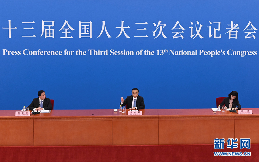 5月28日下午,十三届全国人大三次会议在北京人民大会堂举行记者会,国务院总理李克强应大会发言人张业遂的邀请出席记者会,并回答中外记者提问。 新华社记者 刘卫兵 摄