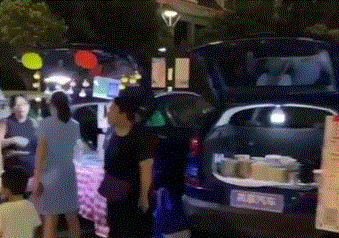 河南郑州市民更是别出心裁。在某广场附近,不少市民开着私家车来摆摊,打开后备箱直接变摊位。
