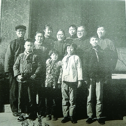 1965年秋祖孙三代的合影。第二排左四为祖父吴福海,左三为祖母潘文俊;第一排左一为吴元浩;第二排左一为吴光伟;第三排左一为姑妈吴竞(国家一级演员,原市政协委员)