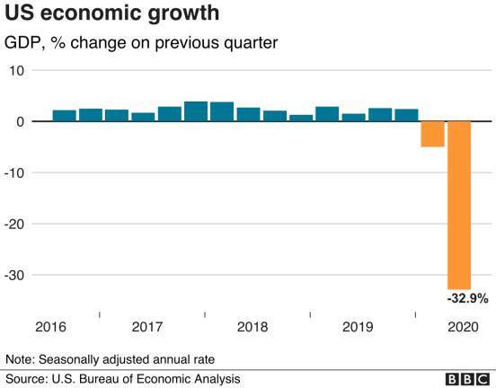 原标题:美国二季度GDP暴跌32.9%给出史上最惨成绩单,失业人数攀升救济金或将停发