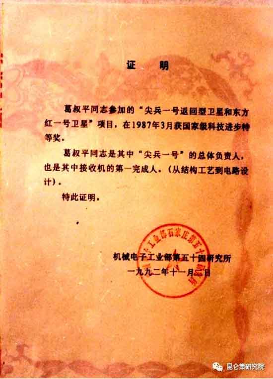 ![]() 父亲带领团队转辗各地参加了我国五次核试验(地上、地下、空中)。他不仅是第一次核试验遥控遥测自动控制系统的总设计师,核试验委员会委员,控制委员会主任,荣立一等功,同时也是我国第一颗返回式卫星测控系统的主设计师,第一完成人。这两个项目都获得了国家科技进步特等奖。 ![]() ![]() 父亲生前因为周总理有明确指示“主要研制人员,不能在电影和任何媒体上露面,以免遭遇不测。”因此知道父亲的人很少,他也甘愿默默无闻。没想到在他去世13周年之际还被纪念,又一次公开了他的事迹。 ![]() 2019年4月“长城网”采访我们兄弟三人有关父亲情况时,我提出,不要只突出我父亲,你们应该采访我父亲的助手,他们了解的情况更多,他们用行动创造了“两弹一星精神”,应该突出“两弹一星精神”激励现在的科研工作者。因为父亲生前多次对来祝贺他立功的同志说:“你们注意了吗,电影一开始演的是农业丰收,工业生产的成就,人民生活欣欣向荣,只有在这个基础上才能进行核试验。核试验的成功,可以说是全国人民共同努力的结果。一次核试验要花多少钱啊!以爆心为圆心,每公里都修建了各种工事,摆放了各类武器、装备,还有动物,用来测试核爆炸的威力。国家没有一定的实力,是根本不可能的,我们只是尽了自己应尽的责任。当时国家的实力还不是特别强大,如果不成功,那将给国家造成多大损失啊!我们是抱着‘只能成功,不能失败’的信念投入工作的,相信外国人能够做到的事情,我们中国人也一定能做到。事实证明我们一点也不比外国人差!” 父亲去世10周年的时候,我们兄弟三人就曾经和父亲的助手们座谈,请他们讲讲当年的情况,这次虽然有些同志去世了,但健在的同志还是讲了很多我们不了解的情况。综合两次听父亲的助手们的讲述,使我们更多的了解了父亲,也越发加深了对他的怀念。 一 为了完成中央下达的第一次核试验任务,国防科委第十研究院党委经过反复研究,要求第十九研究所组建遥控遥测研究室(代号12室),并指定父亲担任室主任。国防科委要求父亲对副总参谋长,国防科委副主任张爱萍上将直接负责,每周向他汇报工作进度。去年已经76岁的崔国义是当时研究室最年轻的技术员,他回忆说:“我到设在一排小平房的十二室报到时,什么也没有。葛叔平主任已经到位,另有六名大学生也已经报到,加上我们六名军校学生共十三人。葛主任安排我们打扫卫生,搬桌椅、试验台、仪器、设备等基本办公用品。几天后,各工作间、实验室已井井有条、干干净净,具备了工作条件。”以后几个月由父亲点名又从所里各有关单位陆续抽调了一批精兵强将,开始了研制工作。研究队伍年轻,白手起家。去年已86岁高龄的李振魁回忆道:“我是从苏联留学回来的,学俄文的,当时让我和葛主任一起到院里去,是因为苏联专家留下了一堆俄文资料,要我去翻译。但那些资料根本没有用。”院领导交代任务后,要求他们保密,不得向任何人透露任务的内容,到国防科委接受具体安排。面对当时美国、苏联等有核国家对我国严密的技术封锁,国内没有任何核试验遥控遥测资料可参考和借鉴,也没有人员接触过的情况下,国防科委要求在一年内完成任务。作为总设计师,项目负责人,父亲当时就在国防科委向党中央和毛主席立下了军令状:保证完成任务! 作为我军第一个侦查干扰(电子对抗)研究室主任,父亲的底气来源于强烈的民族自尊心,多次科研任务完成积累的经验,尤其是研究外国设备与外国专家打交道中了解到他们的水平。更主要的是相信毛主席党中央的领导,用自己的行动建设强大的人民解放军,保卫祖国,再也不受外国的侵略和压迫。 确定研制方案是完成任务的第一步,父亲作为系统总设计师、通信测控专家亲自挂帅总体组,组织研讨总体方案。“相信群众,依靠群众”是我们党战胜一切困难的法宝,发扬“军事民主”是我军的优良传统。讨论会上,没有上下级之分,没有尊卑之分,大家畅所欲言。去年77岁的蒋文修说:“63年我从军事院校毕业,参加 ‘四清’一年刚回来,看到葛主任为了技术方案,同所副总工程师争论的面红耳赤,真把我吓坏了。” 最后,根据可靠、可行的原则,父亲提出的频分制遥控方案获得通过,成为第一实施方案。 一次一个军校毕业不久的大学生晚饭后来到我家,慷慨激昂地讲了他的意见,父亲一直耐心地在听。他走后,我对父亲说,一个刚刚毕业的大学生也太狂了吧,他懂什么?父亲当即就批评我说,不能这么看,年轻人思想活跃,有时他们的一个思想亮点会对我们工作有启发。 没有工艺图纸,就大胆摸索,反复比对,有时为研发一个新部件反复试验,反复修改设计,每次修改都要在例行实验室做 24 小时温度试验,以及“震动”、“电磁干扰”等多项试验,由于程序装置是自动遥控遥测系统的心脏,为了万无一失他们提出三个方案交由三个工程小组研制,父亲的助手樊子麟说:“现在我们看到的主控站一排排彩灯闪亮的控制屏,被控站一个个像礼帽似的接收终端,正是优选的葛叔平之构思和工程设计相结合的方案。”那时加班加点是12室的常态,每天睡眠只有五个小时。去年83岁的李雄飞曾是十二室科研人员之一,说起当时的工作状态依然感慨万千,“当时,时间紧迫,我们研究室全体人员加班加点是常态,大家经常一干就到了凌晨一两点。国家当时是三