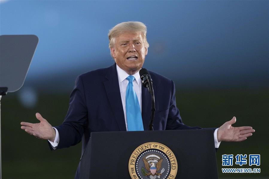 这是9月3日美国总统特朗普在美国宾夕法尼亚州拉特罗布参加竞选集会的资料照片。 新华社记者 刘杰 摄