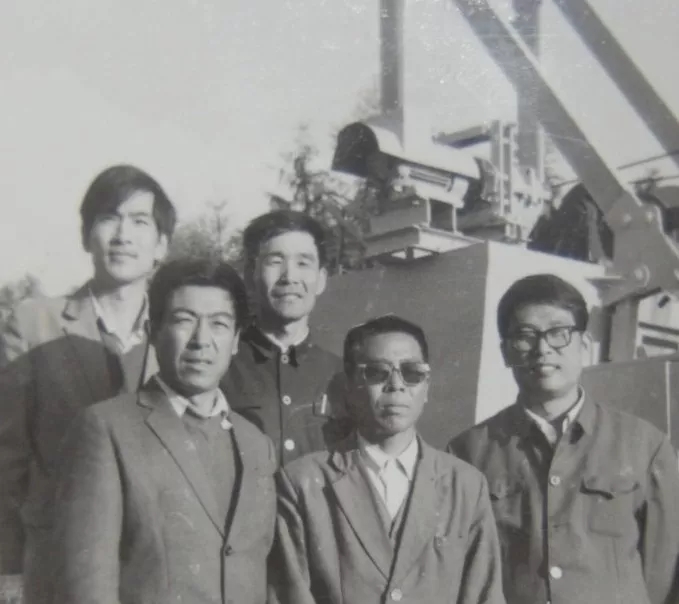 1985年,作者在当年营房前和老连长(戴墨镜者)、老战友合影