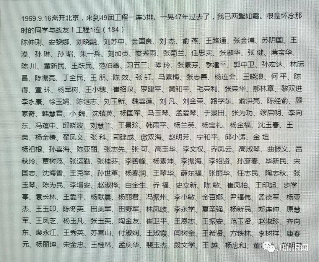 ![]() “我想你,我永远想你” 感谢这个奇妙的信息时代,每个人嘴边有一个麦克风,还有,我们这些老知青,相互间永存的默契的信任。让我一夜之间找到了四五十年前的事实真相。 当在群里聆听到老排长留言“我想你,我永远想你”的呼喊,让我的眼泪夺眶而出的时候…… 我断定,我苦苦追寻的当年这些悲情故事,也都深深埋在战友的心底。 拙文只不过算是一个引子,拉开了大家的话匣子。 兹将大家的后台留言、微信语音、长信短信等择要辑录于此,并附有作者回应。 荒友眼中的老宁: 1. 老宁有个外号,女生都知道 习五三: “老宁当年有个外号,叫百万雄师。我们女生都知道,就是形容他满身的虱子。他的班长排长常常给他择虱子洗衣服。 “还有,老宁出事是在捉拿四人帮的前一年,大概是1975年,那时我还没走呢。他爸来的时候,除了要带骨灰回北京,还郑重的向连里提出一个要求:追认老宁为共青团员。 “那天晚上,团支部开会专门研究老宁追认团员的问题。我特别关心老宁这件事,就在营房外边溜达,等他们会议的结果。好像那天还停电了,一片黑漆漆的,后来他们点上蜡烛开,会开到很晚,我一直等着。 等到他们散会,我迎着一个能说悄悄话的北京知青,直愣愣的问结果。她先是支支吾吾的不说,我就急渴渴的追问,她才吞吞吐吐的告诉我: “大伙说,大伙说,老宁虽然这样不幸,可是,可是,他确实不够共青团员的标准呀。” ![]()