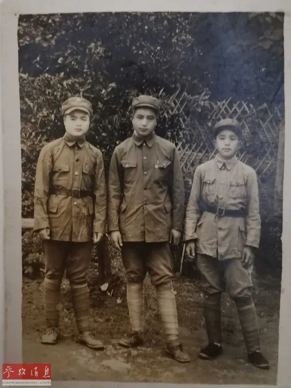 ▲资料图片:1949年薛广文(居中者)与战友合影留念。(受访者供图)