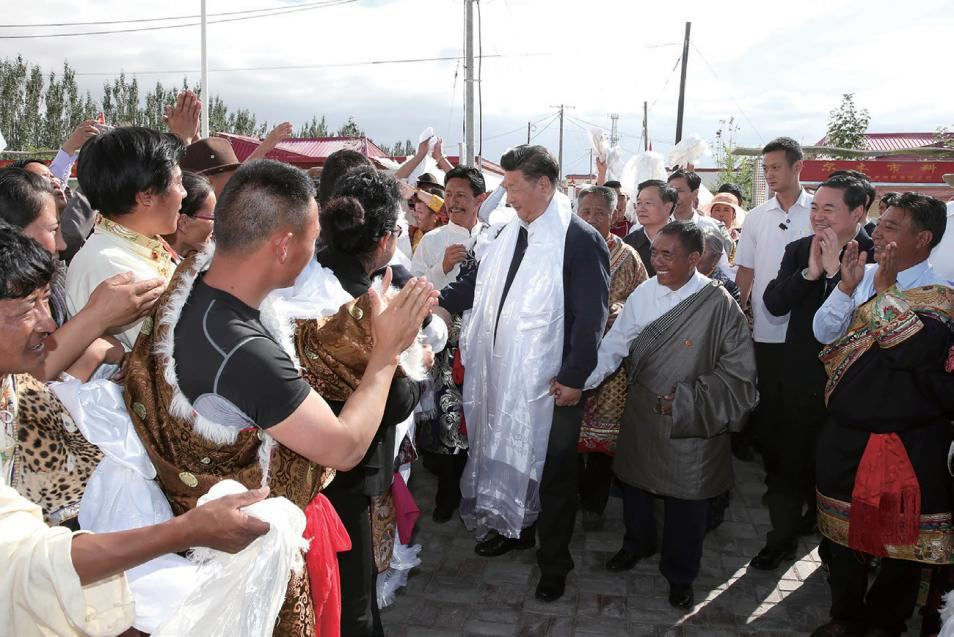2016年8月22日下午,习近平总书记在青海省格尔木市长江源村看望藏族村民并与他们亲切交谈。