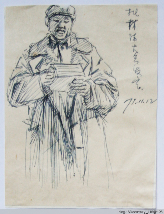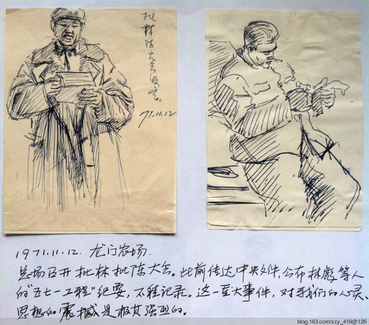 1971 龙门农场 钢笔速写 批林陈大会发言