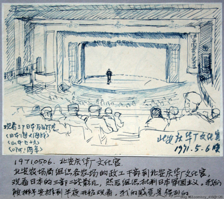 1971 北安 钢笔速写 在庆华厂文化宫看批判的日本电影