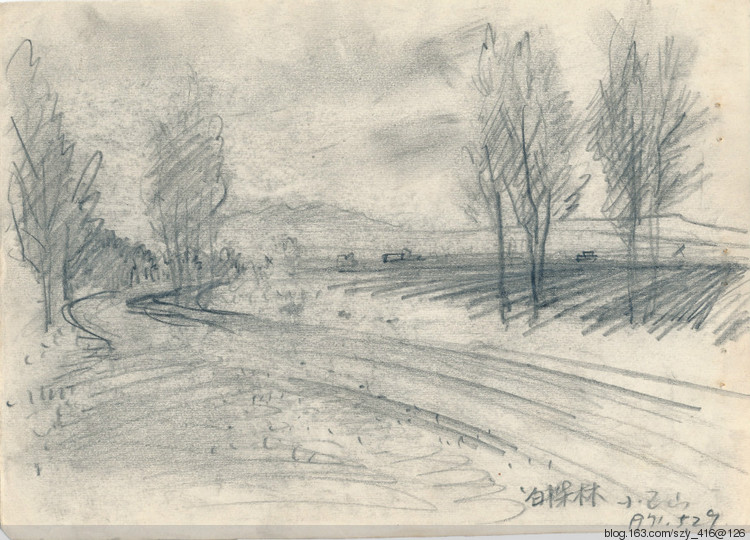 1971 科洛公社 铅笔写生 白桦林 小卫山
