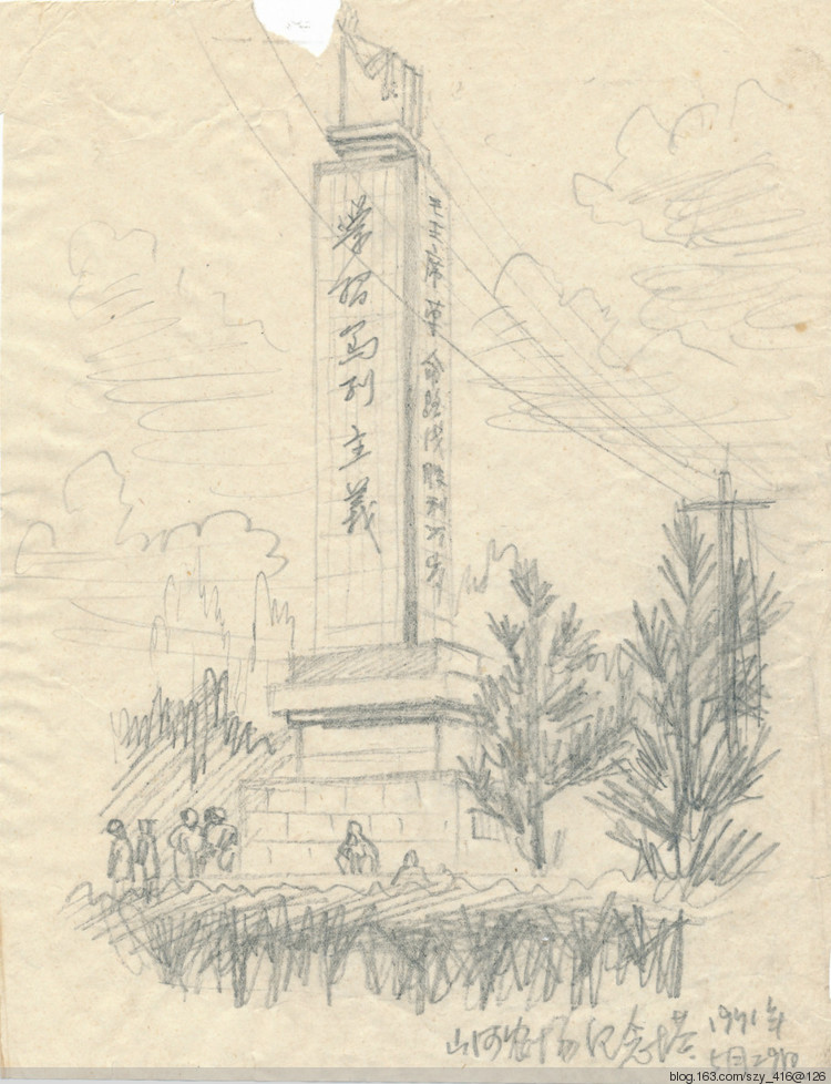 1971 科洛公社 铅笔写生 早晨的平顶山