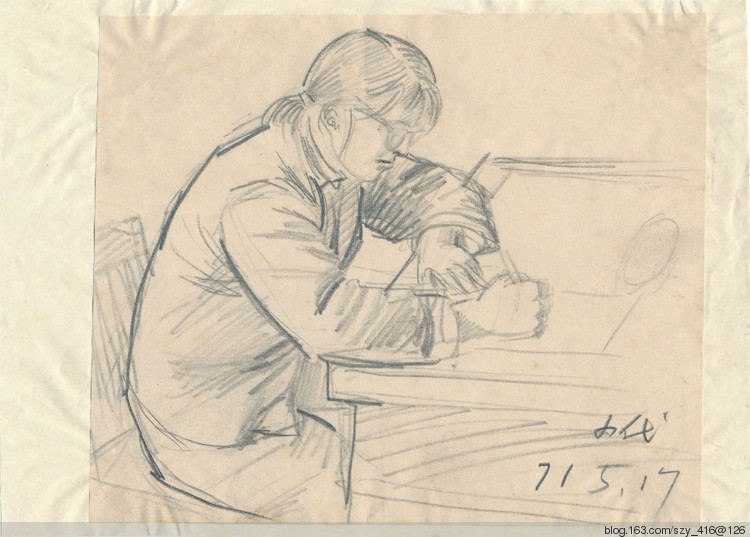 1971 龙镇-北安-齐齐哈尔列车上 铅笔速写 同班同学陈志明