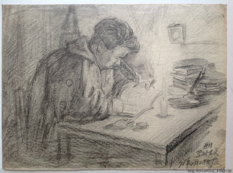1971 龙门农场 素描 哈尔滨知青周继明读马列