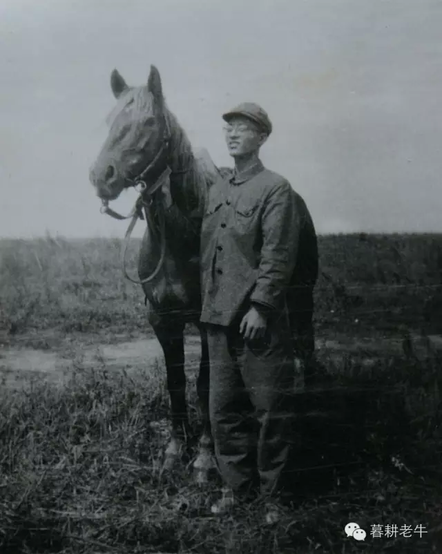 对于这一些我们都不太感兴趣,我们的兴趣在场部周围的草草木木。学习的闲余,我们就去四处转,感到什么都是那么的新鲜,那么的稀奇。最让我们感到新鲜和稀奇的当然是那高大的铁家伙--康拜因。康拜因(Combine的音译),大型的联合收割机,由苏联援助。现在,它就高耸在我们的眼前,一共两架。我们争先恐后地往康拜因上爬,学着掌控、驾驶,似乎已经在无边的麦浪中行驶了。我们招手,我们欢呼,放飞着内心的渴望,留下到北大荒后第一张照片。 我们又在场部旁的畜牧队(后来的九连)看到了马,哇,这可曾经是我们用笔画过的东西,现在活生生的出现在了我们面前!在上海也看到过马,但那是人家牵到城里来卖马奶的,哪像这眼前的这匹,俊郎,挺拔:腿细细的,脖子粗粗的;腰壮壮的,肚子紧紧的;两耳高耸,鼻孔大张:这是一匹名副其实的骏马!在这样的马面前,留影是不能错过的。郁卫民手执缰绳,站立骏马一旁,英俊潇洒;陈惠亮胆大,一翻身就骑到了马背上,好一个战士。和马亲热够了,就往田边去,向日葵也是我们留影的好道具。