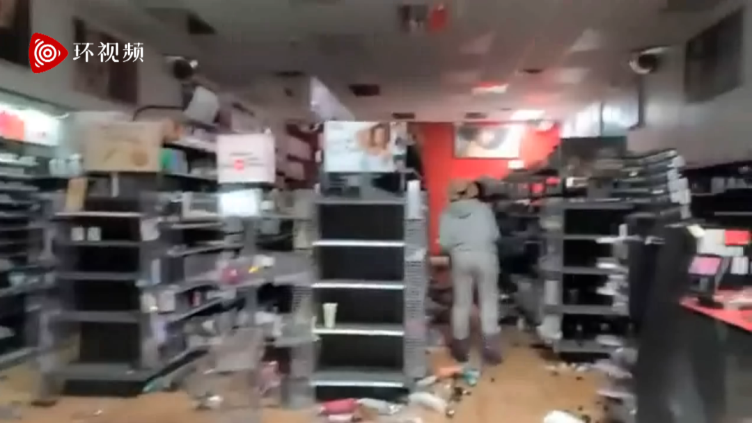 美国一黑人男子在明尼阿波利斯被警方枪杀引发抗议,而美媒进一步的报道发现,抗议活动中出现了抢劫行为。据美国《新闻周刊》12日消息,社交媒体上的视频显示,在抗议者同警方发生冲突时,事发地布鲁克林中心的几家商店已经被“完全摧毁”。 视频画面显示,商店内的货物散落满地,可以看到一些人冲入商店拿走货架上的商品。一家美容沙龙的商店玻璃也被打碎,货架上的商品几乎被洗劫一空。 报道称,明尼苏达州公共安全部局长约翰·哈林顿在新闻发布会上说,布鲁克林公园地区有大约20家企业遭闯入,当地已经启用了国民警卫队。 另据“今日俄罗斯”(RT)消息,在抗议现场警察向抗议者发射了催泪瓦斯和音爆弹。在一段视频中一名女性声嘶力竭地大喊“我们**哪儿也不去,我们**就留在这里!”在几个闪光弹爆炸后,现场一名男子问道“我们是在经历一场战争吗?”