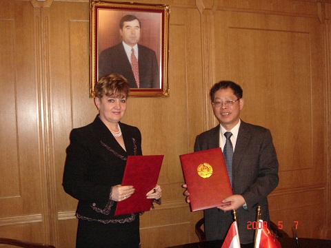 举办(2010年10月) 我想问:愚公移山的时候,太行、王屋是否真的想搬家; 我怀疑:精卫填海的时候,渤海湾是否欢迎远来的泥沙; 我相信:每一个成功结合的背后,都有一个痛苦的分裂; 我看到:每一次欢庆胜利的同时,都伴随着伤感的泪花。 从来只有天造地设才是真正永恒的存在, 人世间哪里有什么可载入史册百年繁华。 但是上帝终究屈服于愚公那固执的伟大, 于是精卫也因此以继续她那徒劳的挣扎。 因为即使宇宙的终结是吞噬一切的黑洞, 毕竟亿万年里发生过无数次灿烂的爆炸。 昨天,我们举行了千百万人的大Party, 昨天,我们欣赏了来自各国的珍草奇葩。 今天,当万国撤展浦江两岸悄然一空时, 不要叹息, 想一想那娇艳无比但稍纵即逝的酥油花…… ![]() 4、2009年5月7日 和塔吉克斯坦共和国有关部门签署参展协议 ![]() 6、2010年10月31日 闭幕式招待会
