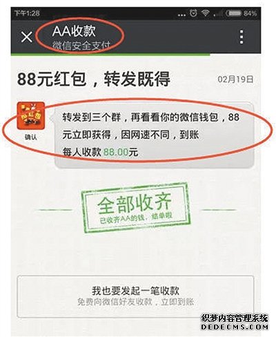 公安部提醒“AA红包”是骗局 尽管“AA红包”看起来像一个红包,但是想要骗到钱,还需要用户的密码“配合”。警方提醒,收任何红包都不需要输入密码,凡是需要输密码的“红包”都是骗局。