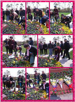 把鲜花插在树上,鲜花代表我们心。明年我们再来看你!