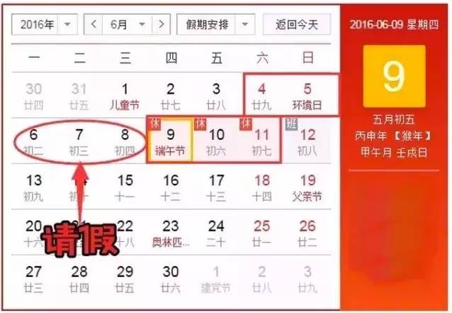 端午节马上就要来啦!具体安排如下: 6月9日(星期四,端午节)至11日(星期六)放假调休,共3天,6月12日(星期日)上班。如果你在6月6日、7日、8日请带薪年休假,就有连起来的8天长假哦! 根据国家相关规定,端午节高速并不免费。大家要合理安排自己的出行计划哦! 高温津贴开始发放
