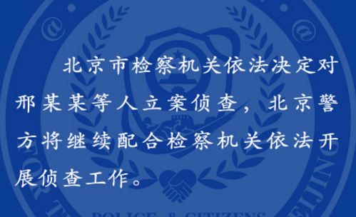 ![]() 北京市检察机关依法决定对邢某某等五人立案侦查 ![]() 民检察院第四分院立案侦查。 2016年6月1日,北京市人民检察院第四分院依法决定对昌平区公安分局东小口派出所民警邢某某等五人进行立案侦查,按程序通知家属。