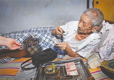 年轻时最爱打麻将 叶子烟一直离不开 黄玉珍还透露,多年前林永清在银行干通讯员,后来干职员,最后干银行出纳,光是干出纳就干了20多年。“那会儿还没有点钞机,都是人工数钱。”靠着干银行出纳,林永清撑起一个家,每个月20元左右的工资,就是一家子的生活来源。 林永清从不沾酒,叶子烟却一直离不开。即使到现在,躺在床上的林永清每天还是要吸7支叶子烟,床上铁盘上放着4个烟斗。 在养成数钱的习惯之前,林永清的爱好是打麻将。“年轻时候很喜欢打麻将,经常输钱,每次输钱就在我面前说:再也不打了,输了好可惜嘛!结果过几天忍不住又去了。”黄玉珍说起来还是会笑,“工作的时候打牌时间少,等到退休了就经常去打,后来慢慢老了,坐三轮车也要去打麻将。这些年眼睛不行了才没打了。”