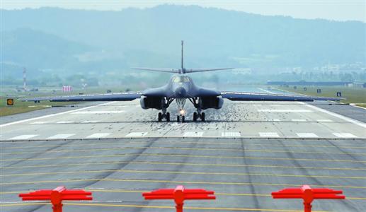 9月21日,美军B-1B轰炸机在美军驻韩国乌山空军基地着陆。