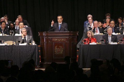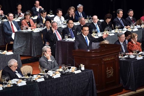 成立于1907年的纽约经济俱乐部,是美国重要的公共论坛,也是开展演讲活动的重要场所。当地时间9月20日晚,李克强总理出席纽约经济俱乐部、美中贸易全国委员会和美中关系全国委员会举行的千人欢迎宴会时,致辞并回答提问,幽默应对、妙语频出。短短4个回答,9次被全场热烈的掌声和笑声打断。 以下是总理当天答问的现场实录。