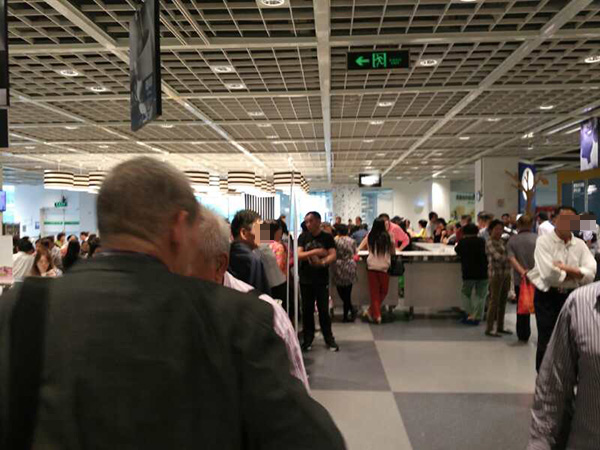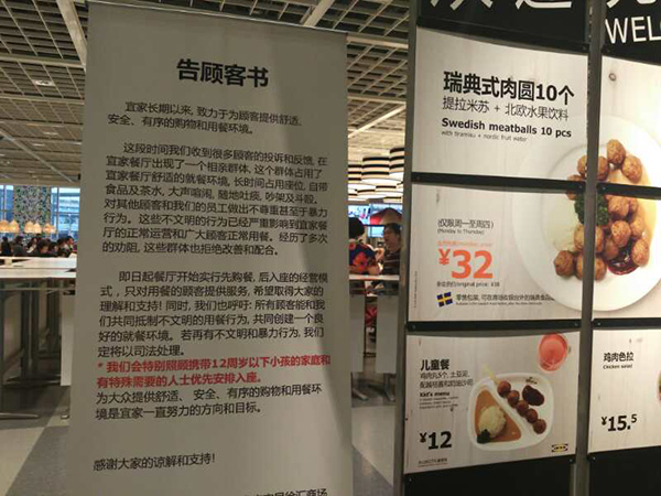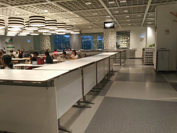在宜家徐汇餐厅,就餐区和非就餐区用一排高桌隔开。
