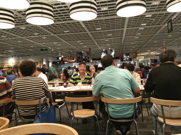 地处上海市中心的宜家徐汇店交通便利,室内环境好,还有不间歇的空调,显得“高档,体面”。有人撰文评论称,这里模糊了消费者和“白相人”的身份认知,又混杂在年轻顾客中,降低了老年婚姻中的年龄因素。 在过去几年里,黄桂珍每周雷打不动从在梅陇的家坐45分钟公交车到宜家。年过七旬的她身材娇小,穿着朴素,微卷的头发里夹着白发,虽然脸上皱纹不少,但皮肤很白净。 27年前,黄桂珍的丈夫患肺癌离世,她独自一人抚养女儿,女儿结婚后离开了家,她寡居多年,一直想找个伴。 正说着话,黄桂珍突然瞄到身边顾客碟子里的剩菜,她的注意力迅速转移到三文鱼身上。她在用过的餐具里捡出一个保鲜膜,动作迅速地包起三文鱼,塞到自己的蓝色布袋里,说要带回去给朋友家的猫吃。“那个朋友现在去旅游了,我给他收着。” 她口中的“朋友”便是正在交往的男朋友,他们俩是在宜家餐厅结识的。黄桂珍回忆,第一眼看到男朋友就喜欢上了,但是不讲,放在肚子里。“他有1米76,那个脸也不太难看,稍微带得出去。他在电话里约我出去,我就答应了。” 一说到男朋友,黄桂珍就偷偷抿嘴笑,眼睛眯成了一条缝。对方比她小三岁,认识五六年了,还没有结婚。“将来总归要在一起的。我们不要急,年纪也大了,互相一起开开心心就好了。” 一起来的朋友范明月66岁,比黄桂珍时髦,穿一身黑色紧身衣,短黑发烫成了微卷,口红鲜艳,牙齿整齐。年轻时范明月知青下乡去了黑龙江,在那结婚生子待了十年,后来丈夫出轨了,她离了婚,带着孩子回了上海。 范明月捏起一小片菠萝包放进嘴里,她强调自己不是奔着找对象来的,只是来这里跟朋友聚聚, “在家里就一个人,也没什么事。这里我们都是单身,有共同语言。” 范明月说话时,68岁的李勇凑在身旁,“老婆、老婆”地叫着。他不时还会离开座位,去别的座位跟其他女性说说话。 “他吹牛,喜欢开玩笑。”黄桂珍说。李勇头发乌黑,身材壮硕,显得热情活络,而在刘树文眼中,这是个“捣糨糊的花花公子”。 在这里,外形好的老人获得搭讪和回应的机会也多了不少。相比之下,刘树文的运气不太好——身形微胖,头已经谢顶,些许白发留在头上让他显得有些老态。 刘树文是个推拿师,女儿是妇产科医生。他一个人公园也去,宜家也来,“想找个互相帮助的人,没有碰到,我退休工资4000多,身体蛮好的,可她们要求太高啊,要房子啊车子啊……” 因为常来宜家,他和黄桂珍也熟络了起来,“他这个人很好的。”黄桂珍指了指刘树文,大部分时间他都安静地坐在一旁听别人说话。 但不说话的人很容易被遗忘。人声一层高过一层,人们都在竭力表达自己,这个热闹的下午刚刚到来。 “房子和钞票的魔咒” 热闹中出现了一个插曲,端着两杯沙拉坐在范明月邻桌的路知行和餐厅的工作人员争执了起来——他被怀疑自带食物。 ![]() 10月初,宜家发出“告顾客书”。 今年十月初,一幅约两米高的《告顾客书》横在了这家店的餐厅门口:“在宜家餐厅出现了一个相亲群体,这个群体占用了宜家餐厅舒适的就餐环境,长时间占用座位,自带食品及茶水,大声喧闹,随地吐痰,吵架及斗殴......即日起餐厅开始实行先购餐,后入座的经营模式,只对用餐的顾客提供服务。” 从此,餐厅入口多了几个身形高大的保安,每天从9点把守到下午5点。餐厅外围则用一排高高的餐桌将非就餐区与就餐区隔离开。非就餐区摆着几张桌子,没有椅子。 ![]() 周二,宜家餐厅,在聊天的老人。 此刻,那排餐桌上已经伏满了男男女女的老人,他们没有购餐,只端着一杯咖啡,挎着环保购物袋,向就餐区里张望。看到坐在就餐区的熟人时,就隔着桌子喊一声,也有就餐区的人走到桌子边跟他们聊聊天。 对宜家来说,这份热闹有些尴尬。 在2011年,宜家就曾贴出过类似的告顾客书,当时还专门辟出免费咖啡区供相亲团体使用。在宜家公共关系经理唐嫱看来,当年是以一种温和的方式试图引导,但几年下来,状况并没有变好,时而还有一些矛盾和冲突发生。 今年国庆期间,因为争抢座位,餐厅发生了斗殴事件。宜家终于“忍不了”了。 被质疑自带食物,71岁的路知行很是气愤,他随即掏出了购物发票“自证清白”。路知行浓眉黑发,脸上皱纹不多,整个人显得很精神。按他的说法,他原来是外事干部,大学学管理,后来进修自学外语,去过51个国家。 因为觉得初中文化程度的前妻“经过改革开放,观念却没有得到成长”, 表现为“打个电话就问,谁打来的,男的女的?后来就限制你行动,又要出去了,跟谁出去的?甚至发展到要翻包。” 2000年,路知行结束与妻子27年的婚姻。离婚后,他自称“自由、解脱了”。 路知行刚刚陪坐在对面的张爱娟办了宜家会员卡。今年60岁的张爱娟身材纤瘦,打扮看起来年轻入时:深红色高龄无袖针织衫,嘴唇上薄薄的一抹红色。 丧偶20年,张爱娟独自养育儿子长大,孩子结婚后不愿意跟她住在一起,她一个人在家里寂寞,又没有交往的对象,就来宜家散心。 路知行对她来说似乎条件并不太差。但张爱娟还是尖着嗓子“酸”他: “一个男人跑了51个国家,可能一个人跑吗”,“他有一卡车女人”,“家里娇妻美女藏着呢”,尽管如此,两人还是交换了微信。 路知行确实有一个“精神伴侣”,两人已经同居10年,但不打算结婚。 据他说,那个 “精神伴侣”67岁,有一个女儿和一栋一千万的房子,房子是女儿贷款买的