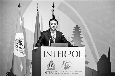 10日,中国公安部副部长孟宏伟在国际刑警组织第85届全体大会上发表竞选演讲 供图/新华