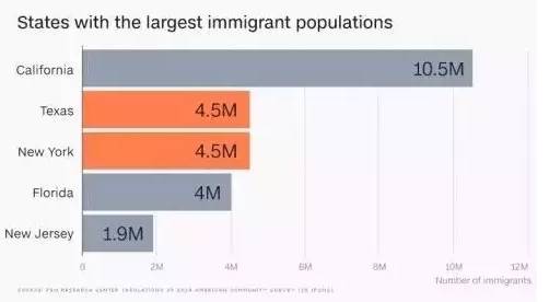 如果加州独立了,意味着这些收益都归加州人民自己支配! 第三,移民多、国际范。 加州是个非常多元化的州,拥有全美最多的移民。目前加州移民人口达到惊人的1050万,是第二的德州和纽约州的两倍还多!而整个加州人口也还不到4000万。