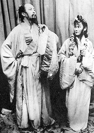 1942年话剧《屈原》剧照,金山饰演屈原,张瑞芳饰演婵娟。