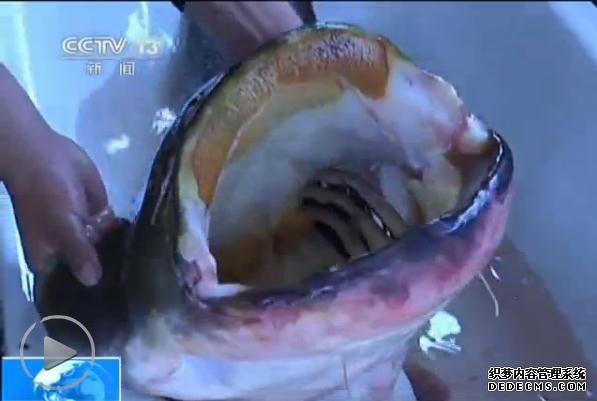 鲶鱼的大嘴 主持人:近日在乌苏里江,渔民意外的捕获到一条很罕见的巨型怀头鲶鱼,重达87斤。同时黑龙江抚远县也是相继发现了两条重达700斤和900斤的大体鳇鱼。 解说:这条怀头鲶体长1.7米宽60厘米,体重87斤,头大嘴大还着两根长须子,头背部呈灰黑色,腹部白色。这条怀头鲶不仅体型大,力气也大得惊人,两名壮年费了很大的力气才把它拎起来,通常在乌苏里江捕到的怀头鲶只有三四十斤重,像这样的巨型怀头鲶实属少。 孔令飞(虎林市渔民):我和我父亲在乌苏里江打了30多年鱼了,头一回打这么大的鱼,非常罕见。 解说:据了解,怀头鲶生活在江河湖泊中,为食肉性大型淡水鱼类,性情凶猛,全凭嗅觉和两对触须辨识。 同样,在素有中国鲟鳇鱼之乡的抚远县,几天前一渔民捕获到一条700多斤重的达氏鳇鱼,时隔一周的时间又有一条体重近900斤的达氏鳇鱼在黑龙江抚远段被打捞上岸,这条大鳇鱼的出水也刷新了当地近十年来所见最大雌性达氏鳇鱼的纪录。这条近900斤的达氏鳇鱼体长3.15米,身体最粗位置的直径有近一米,工作人员介绍说这条鱼的寿命大概在60到70岁之间,如此大个体的雌性鳇鱼并不多见,由于个体超大,渔民将在其捕捞上岸的过程中也着实费了一番周折。致使它的颈部和脊椎处留下四处小的伤口。