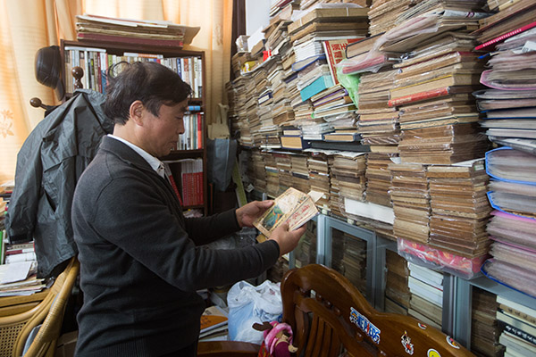 花数百万元聚书8万册瞿永发被称为上海“最接地气的藏书家”。 在上海中心城区曾经最大的棚户区虹镇老街,他住了近60年。在2013年动迁以前,他家4层楼的老房子里藏了6万册书,塞得满满当当,即使是一楼的厨房,除了必备的厨房用具,便是整堵墙那么大的两架子书。 他告诉澎湃新闻记者,自己从小就特别喜欢书籍,但真正开始大量购买并收藏旧书,是从1970年开始的。每次买回旧书,他都会小心地将灰尘清理干净,然后用透明塑料袋仔细包好,分门别类地放置在书架上。“防火和防水,是旧书保存最重要的两点,你看我这些旧书,虽然已经几十年了,但看上去却还是和新的一样。”他说。 据瞿永发介绍,他买来的旧书品种很多,有自己最喜欢的文献史料,也有旧期刊杂志,还有很多小说,如今已有8万册左右,“最近几年,几乎每年都要花一二十万元买书,一直坚持到现在,再加上此前数十年购买旧书的花费,算起来也要花掉几百万元了。” 可是,66岁的瞿永发不得不为自己深爱的8万册藏书,找一个相对较好的出路。“有些人会捐出去,有些人会卖掉。”瞿永发说。 据东方早报此前报道,有“民间第一藏书家”之称的故宫博物院研究院特聘研究员韦力认为,书对于每个藏书人,都是“曾经拥有”,但这个接力棒必然有递出去的一天,“换言之,你的书必然有‘出手’的一天。” 乡邦文献收藏与研究者祁学明提出,藏书家要有“五个得”:碰得到、看得懂、买得起、守得住、最后卖得出。 ![]()