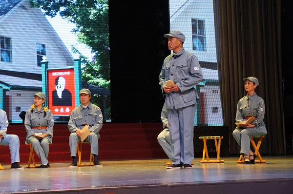 ![]() 2016年庆祝中国共产党建党95周年 纪念红军长征胜利80周年 纪念开国领袖毛主席周总理朱委员长 《先辈回眸应笑慰》专场演出 开篇 1大合唱毛泽东诗词《西江月·井冈山》《七律·中国人民解放军占领南京》 指挥 李向荣 演唱 上海欧阳知青合唱团 第一乐章 伟大的领袖毛泽东 2情景表演毛泽东《老三篇》节选 表演 上海知青朗诵艺术团 3京歌毛主席诗词《娄山关》 演唱 毛建丽 4情景表演《红军想念毛主席》编导刘德祥/表演上海红土情知青艺术团 5短剧《霞姑与润之》 编导 东方文姝 青年毛润之:印帮龙 杨开慧:周梅香 同学/特务/叛徒:黄小强 6评弾毛泽东诗词《蝶恋花·答李淑一》 演唱 郑静雯/伴舞上海诗剧社 7男高音独唱《长征》 演唱 董国庆 第二乐章 敬爱的朱德委员长 8情景表演《朱德的扁担》 编导 陈洪贞/表演 上海红土情知青艺术团 9朱德诗词选段 群诵 上海诗剧社 10葫芦丝重奏《想念朱德委员长》 演奏 新江湾城葫芦丝艺术团 刘以洁 徐雅星 第三乐章 人民的好总理周恩来 11女声组唱《歌唱敬爱的周总理》 演唱 新四军历史研究会6师东进小分队 12男声组唱《想起周总理纺线线》 演唱 新四军历史研究会6师东进小分队 13周恩来诗词选 群诵 上海知青朗诵艺术团 第四乐章 永远的怀念 14女声合唱《绣金匾》 指挥李向荣 领唱魏续荣 演唱上海欧阳知青合唱团 15 陕北民歌《毛主席恩情比山高比水长》 演唱 廖建平 16 京歌毛泽东诗词《菩萨蛮·黄鹤楼》 演唱 邓诗祥 17群诵《告慰红军》 表演 上海诗剧社 18舞蹈《红旗颂》 表演 上海黑土情知青艺术团 总策划 出品 赵大砥 总制作 赵杉 总协调 张国弟 总导演 高云凌 宣传总监 葛天琳 舞台监督 东方文姝 剧务主任 刘以洁 各团执行导演 郭新权 李向荣 孙建华 金捷 万曼影 主持人 周子腾 林莎 LED 制作 陈国敏 吴祖康 摄 像 陈正毅 周建新 魏晓红 后期制作 陈正毅 摄 影 俞家清 丁建钧 陆永隆 影音控制 吴祖康 剧 务 刘秋妹 李安娜 朱敏 王家忠 票 务 刘素贞 赵杉 参演团队 上海诗剧社/上海知青朗诵艺术团 上海欧阳知青合唱团 上海红土情知青艺术团 上海黑土情知青艺术团 新四军历史研究会6师东进小分队 新江湾城葫芦丝艺术团 剧场志愿者安保团队 上海春申知青联谊会 负责人 张国弟 大厅志愿者服务团队 新江湾城葫芦丝艺术团 负责人 刘以洁 主办 上海颐若文化传播有限公司 协办 老辰光网 金色年华知青网 知青文艺网(土豆网)珍艺视频 特别鸣谢 厚德仁(上海)公司 演出时间 2016年12月9日 14:00 演出剧场 控江路1155号 杨浦大剧院 ![]() 《红军想念毛泽东》 ![]() <l老三篇节选> ![]() <霞姑与润之> ![]() 《蝶恋花.答李淑一》 ![]() 《歌唱敬爱的周总理》 ![]() 《京歌 菩萨蛮 黄鹤楼》 ![]() 《情景歌舞 朱德的扁担》 ![]() 男声独唱《长征》 ![]() 舞蹈《红旗颂》 (责任编辑:admin) |