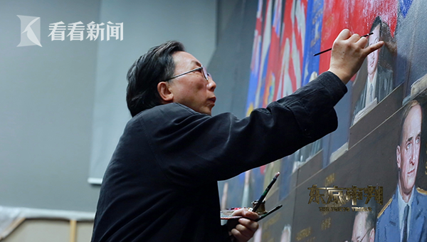 擅长历史人物题材的画家李斌从十多年前就开始关注“东京审判”这个题材。这幅长8米高4米的巨幅油画,就是李斌准备完成的《东京审判》十幅组画中的第一幅。
