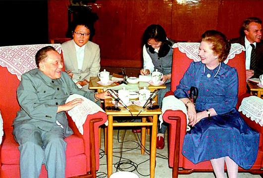 图为1982年邓小平与撒切尔夫人会谈。左二为张幼云。