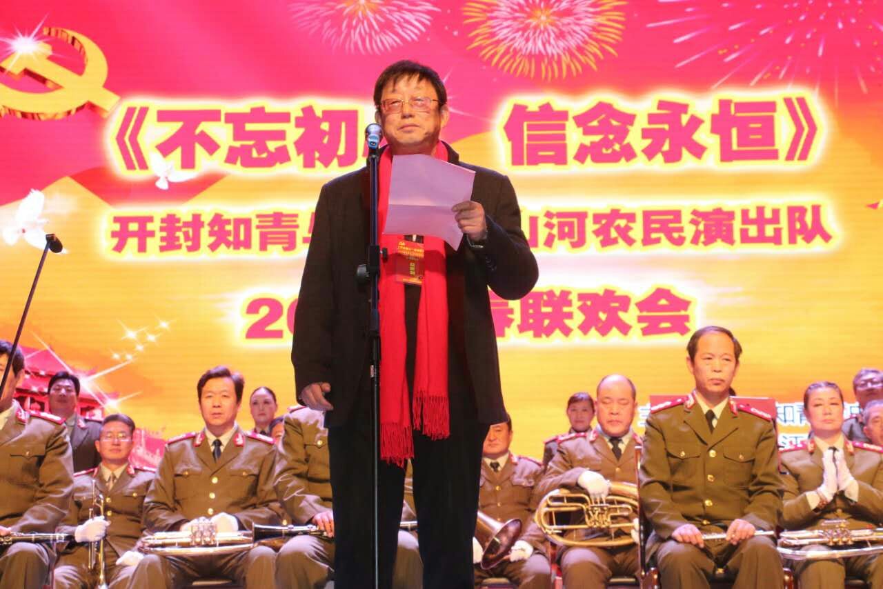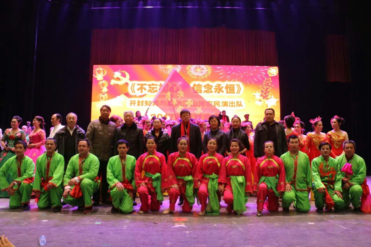 2017年元月13日下午二点半,一场冠名“不忘初心,信念永恒一一开封知青与黑龙江山河村农民演出队2017年迎春联欢会”在六朝古都开封大众剧院隆重举行。来自开封全市的16个知青艺术团的380名演员与来自黑龙江逊克县山河村12位农民同台演出了24个节目。剧场上下二层的1058个座位全部爆满,许多人只能站在剧场两旁观看演出。![]() 开封是六朝古都,当年有十万知青上山下乡。深厚的文化底蕴,造就了独特的知青文化。在全国各省市知青文化活动中,开封知青以特别讲团结、特别讲演出质量著名。为纪念毛主席诞辰122周年、纪念毛主席“广阔天地大有作为”批示60周年,2015年12月26日开封知青也在大众剧院举行了大型演出,20多个高质量的纪念领袖诞辰的红色歌舞,给80多名来自全国各省市的知青留下了深刻印象,大家一致称赞开封知青的舞蹈质量很高,完全可以与专业舞蹈团媲美。 今天这场由开封市知青历史文化研究会、中共逊克县委宣传部共同主办的文艺演出,又一次超出了人们的想像,以题材广阔、形式多样、内容丰富、节目新颖,赢得了观众的热烈喝彩和阵阵掌声。 联欢演出在开封市军威管乐团独特编排的交响乐合奏(知青迎春曲)中开幕,这组交响乐由东方红、革命人永远是年轻、希望的田野、太阳最红毛主席最亲、人民军队忠于党等8首老知青当年耳熟能详人人会唱的交响乐声中开幕。红色的歌曲、欢快的旋律、澎湃的音乐、激情的演奏,赢得了全场的欢呼,立即将联欢会引向了高潮。 第一个舞蹈就是山河村农民的(欢乐中国年),将盛世中国农民们欢庆丰收,喜迎新年的欢快心情充分表达了出来。 开封市蓝月亮艺术团的舞蹈(花开盛世)对应表达了城市市民喜庆盛世的心情。 由开封市教育农场知青艺术团40多人新创作的情景歌舞(我的农场我的歌)生动地记录了老知青重返第二故乡的激动心情。1971年开封市有30多所中学的800多名学生下乡到开封市教育局创办的“教育农场”,这个农场后来又为开封市各大中小学培养出了数百名教师,挑起了全市人才培养的重担,书写了开封教育史上的浓墨重彩。 山河村11名农民身穿鲜艳的西班牙斗牛士服装,伴随着激烈的步伐和大幅度的转身表演的(西班牙斗牛舞)让人们领略了西班牙激烈的斗牛场面。 著名豫剧(朝阳沟)是上世纪五十年代中国最早反映城市知青上山下乡的故事,又被改编成电影,在全国产生了巨大的影响。这次由开封市老干部活动中心健康快乐舞蹈队原创的舞蹈(我们说说心里话),16位姑娘每人拿一把坐凳上台,又说又笑,又坐又跳,又打又闹,又悄声细语,又大声喧哗,将农村生活渲染得生动活泼,赢得了观众开怀大笑。 由开封市知青历史文化研究会耿小兵会长构思了6年创作的(开封知青之歌),这次由开封市老干部合唱团搬上舞台受到了热烈掌声。 满怀理想到边疆, 一干就是十来年 。 誓把青春献农村, 何惧千难和万险。 知青里面能人多, 能驾农机能教课。 赤脚医生来针灸, 手到病除好利索。 山想人来水盼人, 盼来知青是亲人, 千言万语说不尽, 见到你们格外亲。 这首由老知青贾爱春创作、山河农民演出队表演的快板书(见到你们格外亲),讲的都是当年知青自己的事,引起了大家的共鸣,受到了特别的欢迎。 开封市喀秋莎艺术团将京歌舞蹈(梨花颂)作了改编,演得有滋有味 开封市红霞舞蹈队的(山路十八弯)将多山多水的苗岭山区姑娘们爱家乡爱山水的欢快感情表演得十分活泼细腻。 位于黑龙江边的逊克县是多民族地区,汉族、满族、鲜族、赫哲族、鄂伦春族、俄罗斯族等都有,这次山河村农民演出队带来的鄂伦春歌舞(高高的兴安岭),身着鄂伦春族服装,原声态满族语的演唱,受到了观众们的特别欢迎。 开封市九月天模特队原创的舞蹈(汴河游),将古代汴京老百姓喜游京城的欢快场面表演得生动朴实微妙微巧。 特别应该称道的是由开封高中老三届高中知青艺术团60多人原创的团队舞蹈(晨曲),将新世纪以来城市公园里每天早晨老人们练拳炼剑练歌练舞练字炼步练鸟练艺的多方面多角度五彩缤纷的早生活表演得多姿多彩淋漓尽致。据了解,参加这个舞蹈演出的都是开封第一中学的六六届老高中同学,年龄大的72岁,小的也68岁,平均70岁了。为了参加这次大型迎春演出,这台舞蹈是突击创作排练的,许多同志特意从北京、天津、西安、海南等各地赶回来,而且由于时间实在短促,大家仅仅排练了二三次就上台了。由于表演的都是大家日常熟悉的生活,演出一炮打响,一举成名,获得了热烈掌声。 由开封市群艺馆金百合艺术团演出的舞蹈(九儿),将电影(红高粱)中的九儿形象搬上了舞台,16个农村新娘子出嫁路上青纱帐里的娇柔欢快形象给人们留下了深刻印象。 舞蹈(沂蒙颂)演的是沂蒙山区一位大嫂用自己的奶汁救护受伤战士的故事,是男女双人舞。但是开封市红太阳艺术团创作的集体舞(沂蒙颂),变成了12位农村大嫂救护6位受伤战士的集体舞,农村大嫂的舞蹈动作不局限于沂蒙山区而是带有东北二人转味道的动作,不仅增加了激烈战场的背景,而且更增加了军民鱼水一家亲,让人耳目一新。 由开封市康乐艺术团根据大型舞蹈(孔子)选段编排的(采薇),将古代(诗经)中的(采薇)一诗描写水乡劳动场面的意境,表演得十分细腻,好评如潮。 山河村农民演出队的(东北大秧歌)和开封市俏金秋艺术团的集体舞(梦想的旗帜