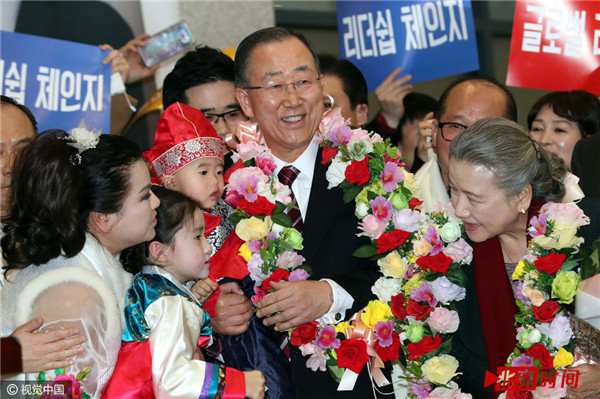 潘基文回国,大批民众于机场夹道欢迎。